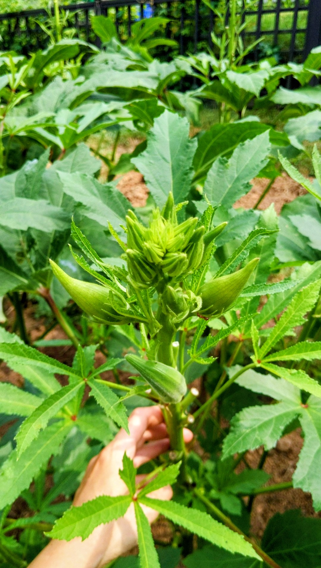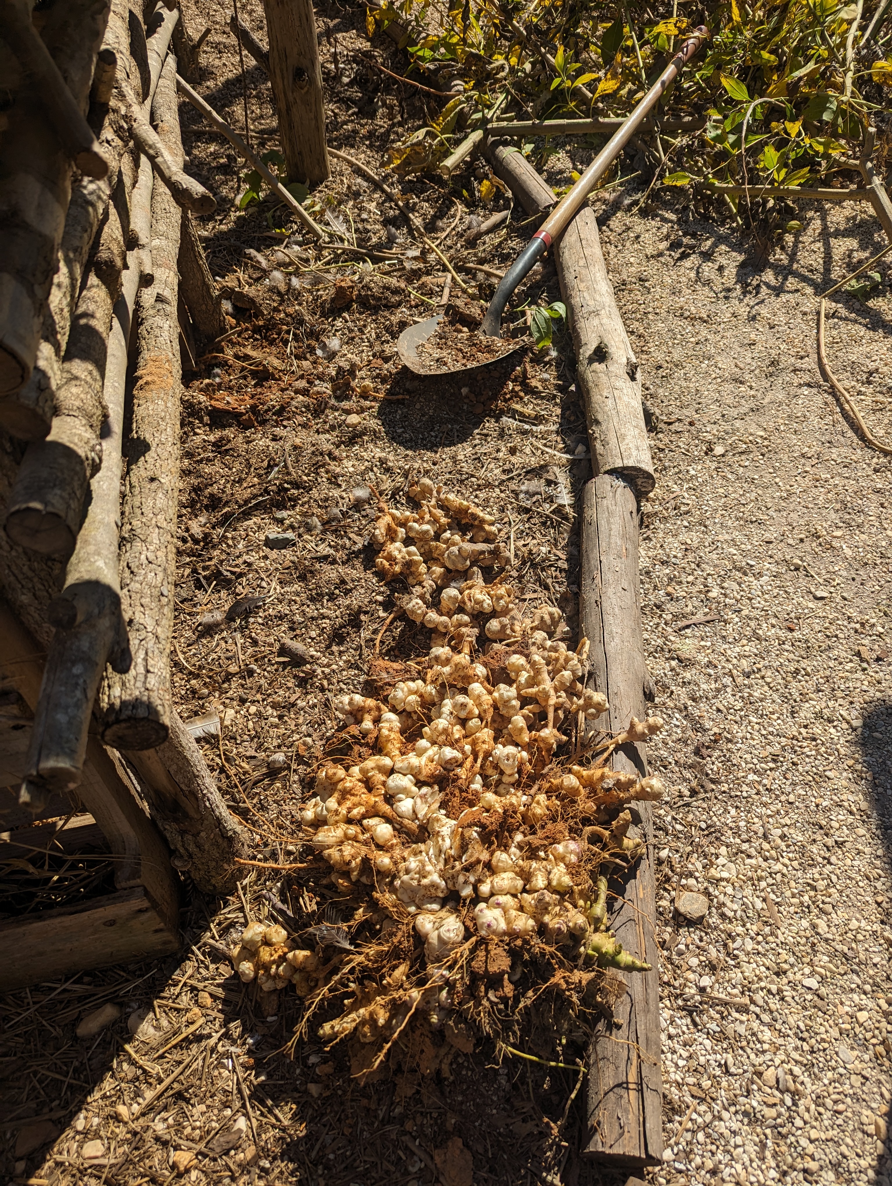 The structure combines functional garden design with natural materials, providing both an efficient planting system and a visually distinctive landscape feature.