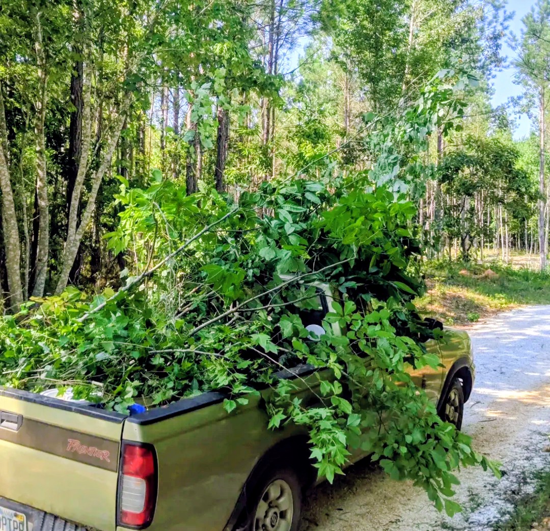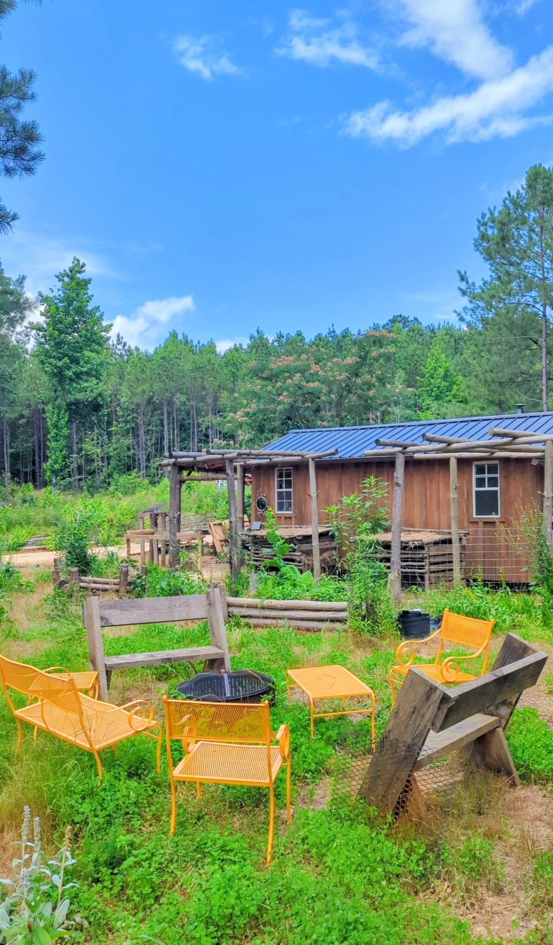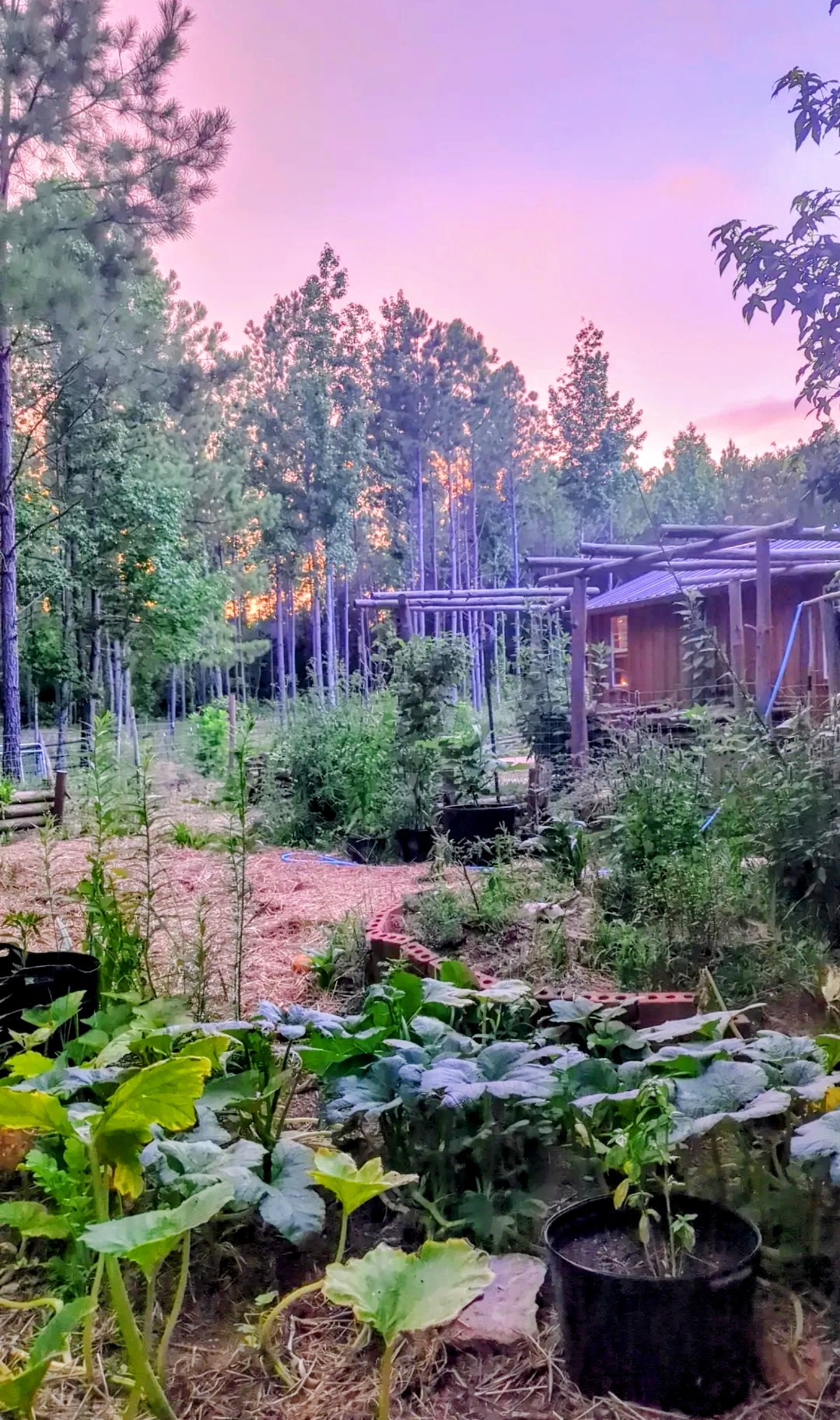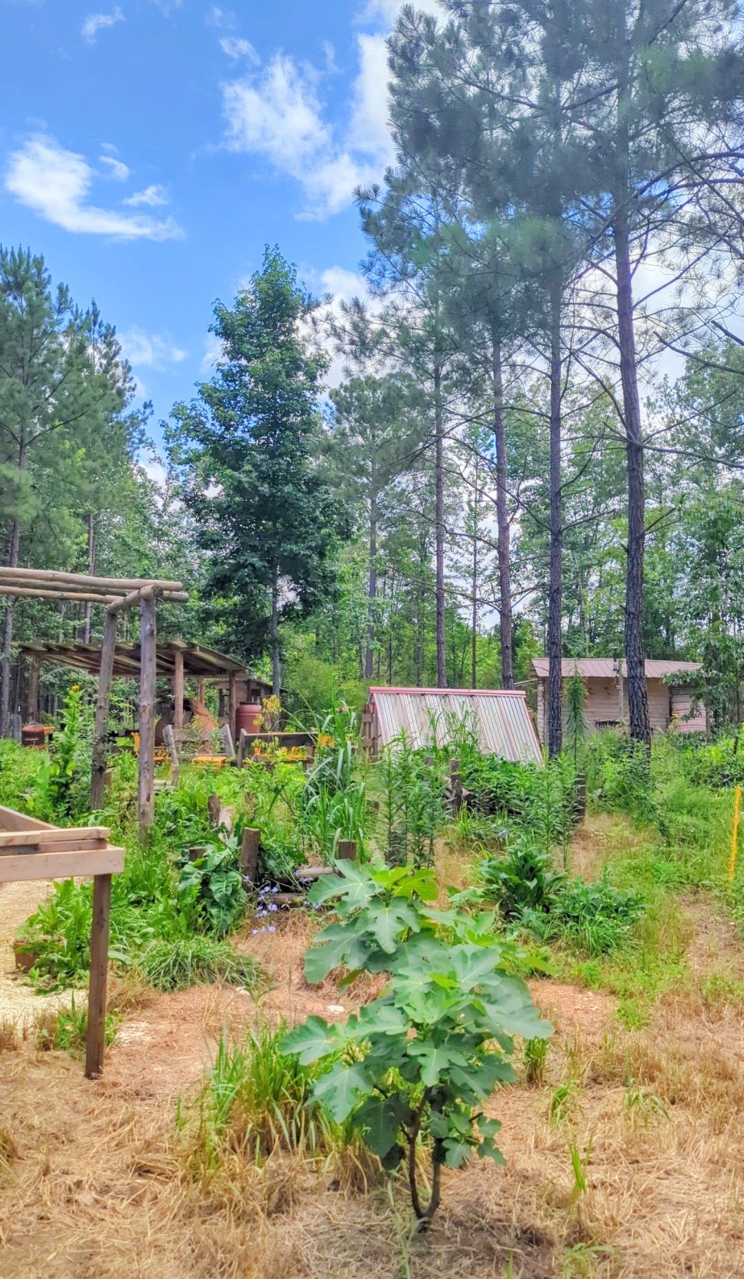 The primary focus during the early stages of the project was ecological restoration—adding as much organic matter back into the soil as possible while selectively removing pine trees. The harvested trees were then milled and repurposed as lumber for on-site garden and infrastructure projects.